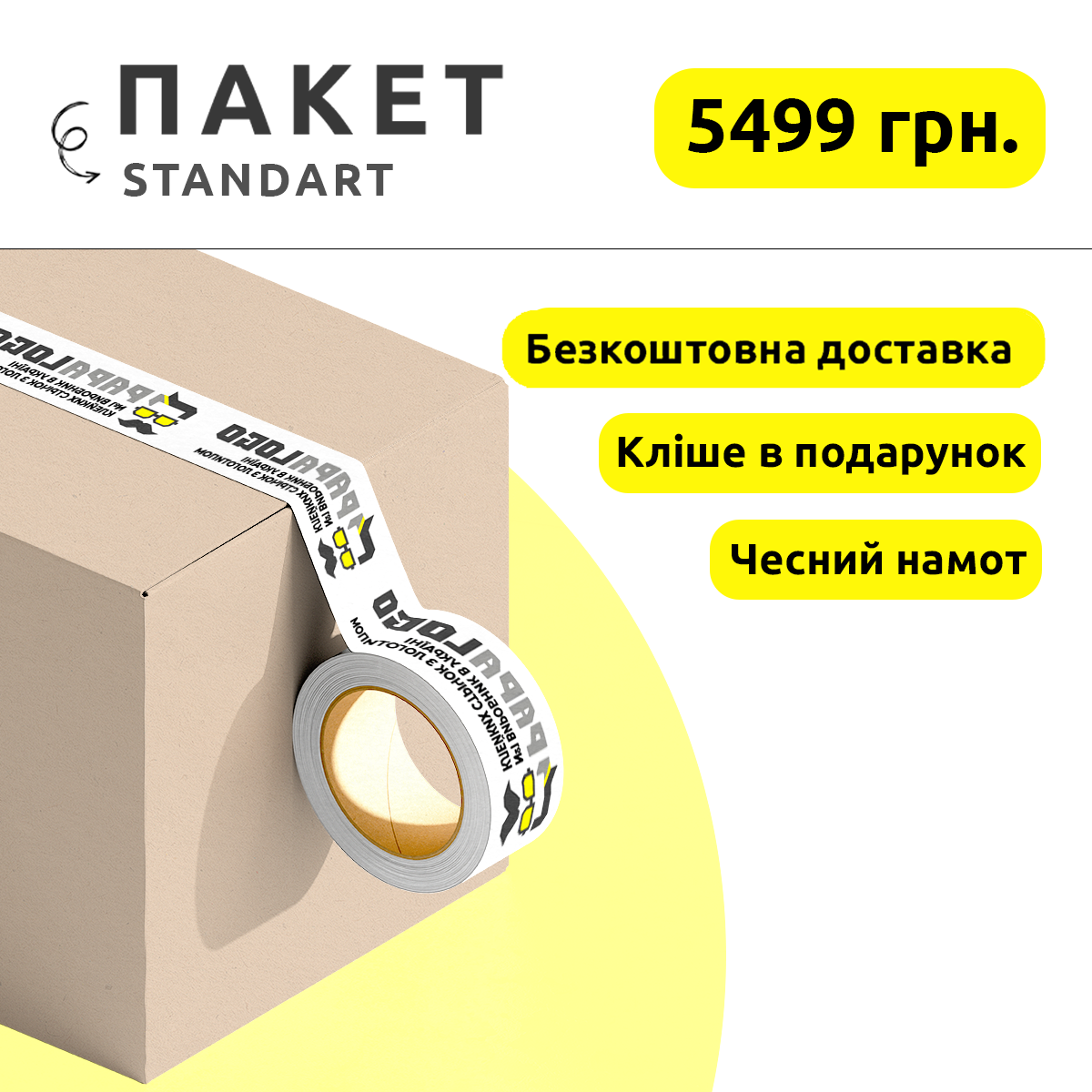 Рекламний скотч від Papalogo не лише ефективний засіб упаковки, а й потужний інструмент брендування. Пакування за допомогою скотчу з логотипом робить товари більш помітними, а торгові марки -впізнаними. Кожен наш клієнт отримує не просто продукт, а й індивідуальне рішення, яке додає вартість та авторитетність їх бізнесу.